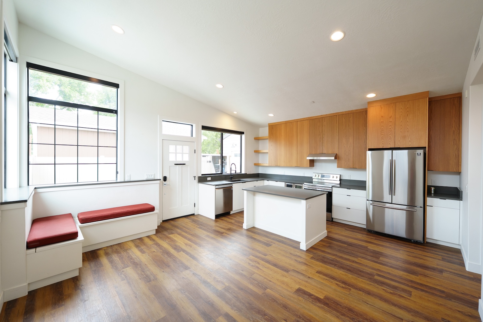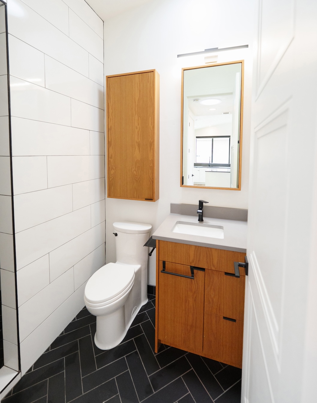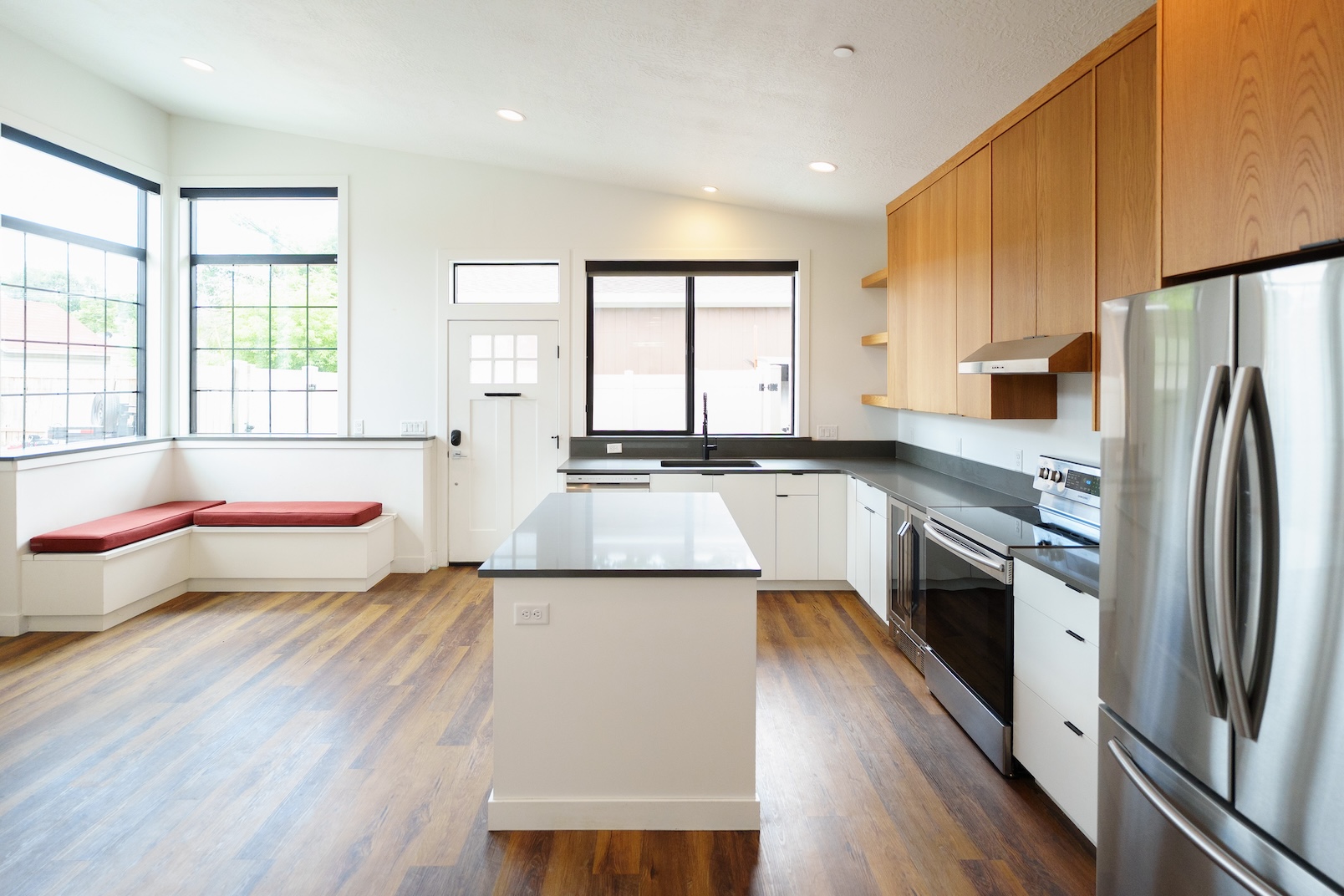 Completed in 2021, this one bed/one bath detached ADU has a simple modern sensibility with a striking kitchen design.